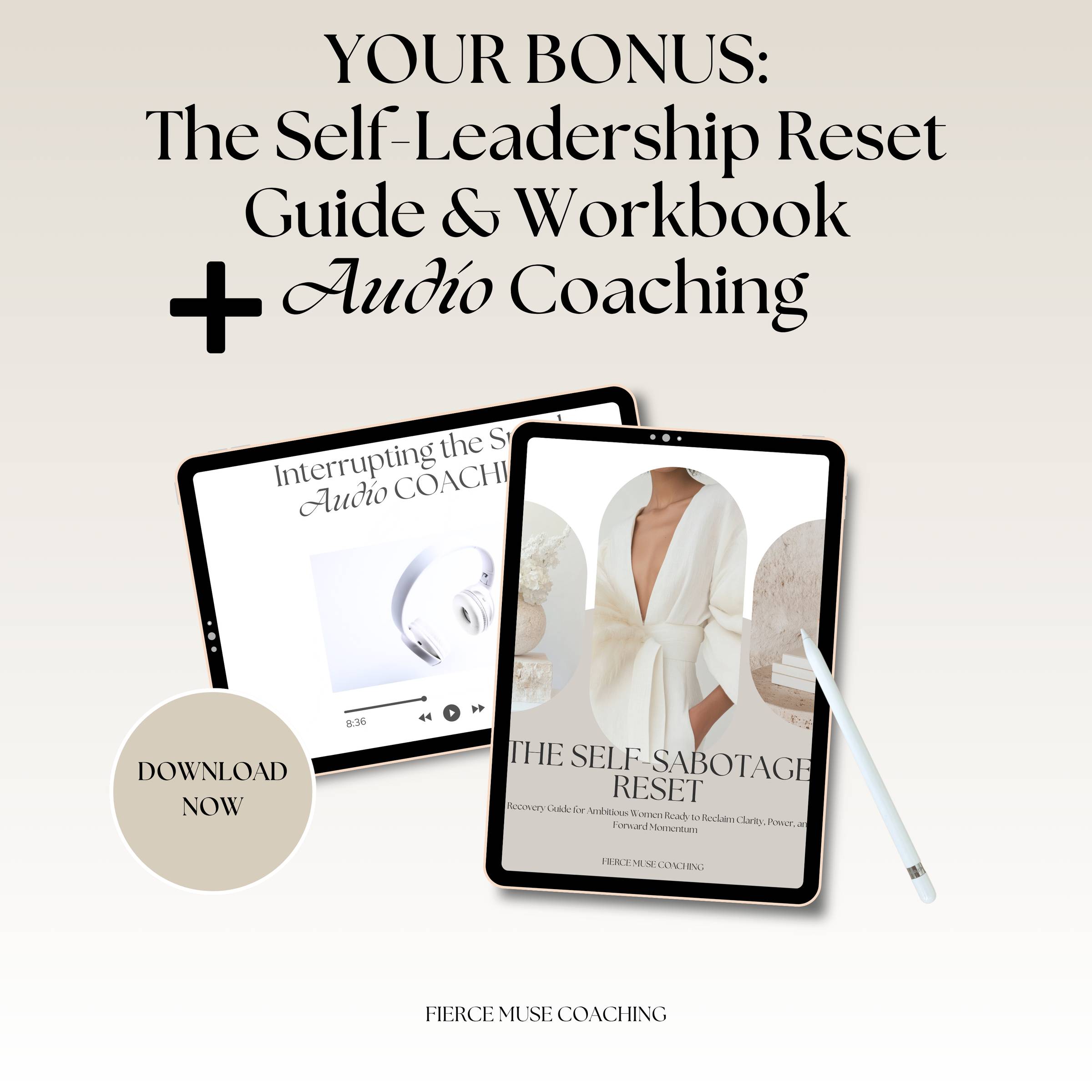 You’ll also receive the Self-Sabotage Reset Guide—a powerful bonus that helps you uncover the hidden patterns holding you back—and a companion audio coaching, Interrupting the Spiral, to shift you out of overthinking and into aligned action.